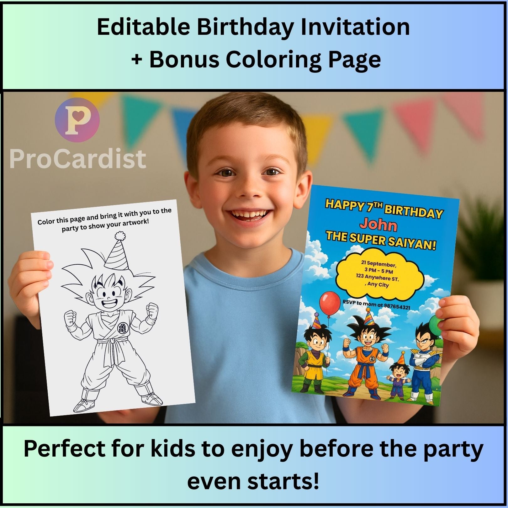 Dragon Ball Z Birthday Invitation Canva Template | ProCardist