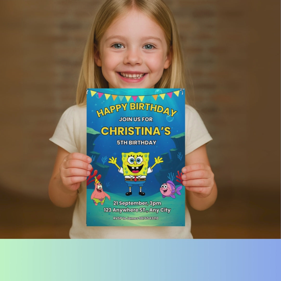 SpongeBob Birthday Invitation Canva Template | ProCardist
