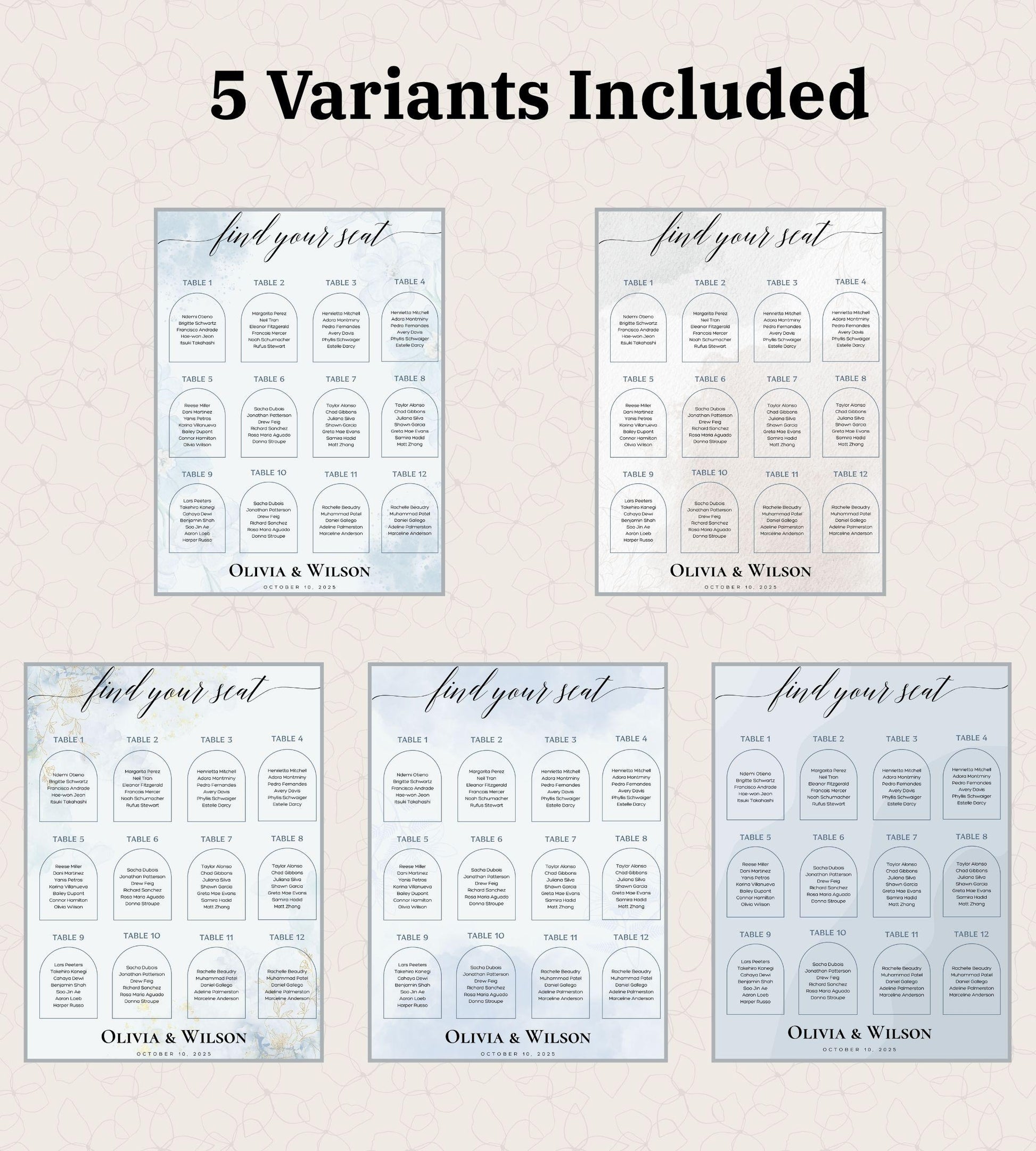 Effortlessly organize your big day with our editable Wedding Seating Chart Template, designed to suit every wedding style! This INSTANT DOWNLOAD Canva template includes 5 stunning background options — perfect for brides and grooms seeking personalized elegance.